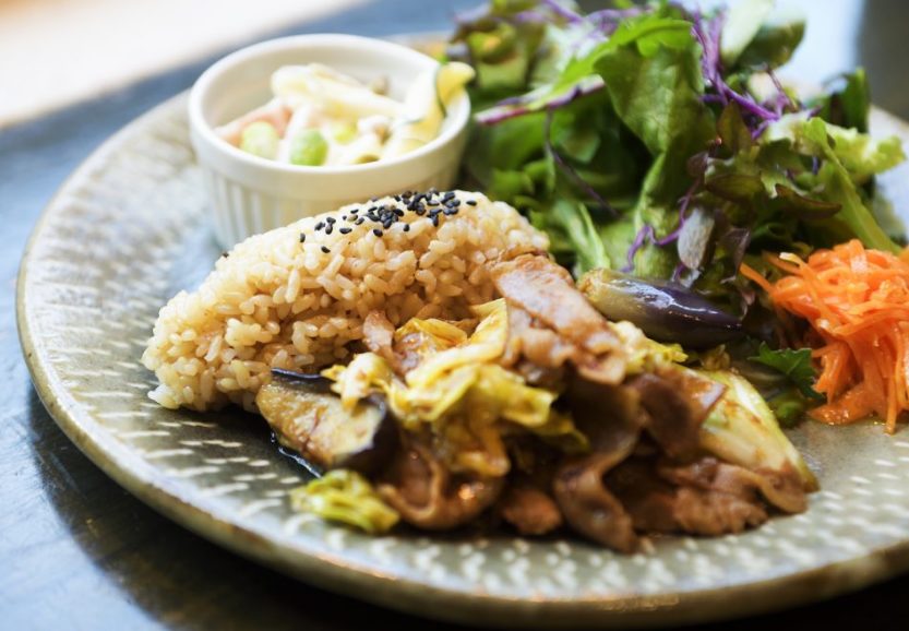 ランチはプレート形式で提供され、主菜に加えて副菜やスープがバランス良く盛り込まれています。過去の例では春キャベツを使った回鍋肉、秋には炊き込みご飯やきのこ料理など、季節の食材を最大限に活かしたメニューが登場しています。特に玄米と白米を選べる点は健康志向の人に好評で、玄米はもちもちとした食感が特徴的で食べやすいと口コミでも評価されています。